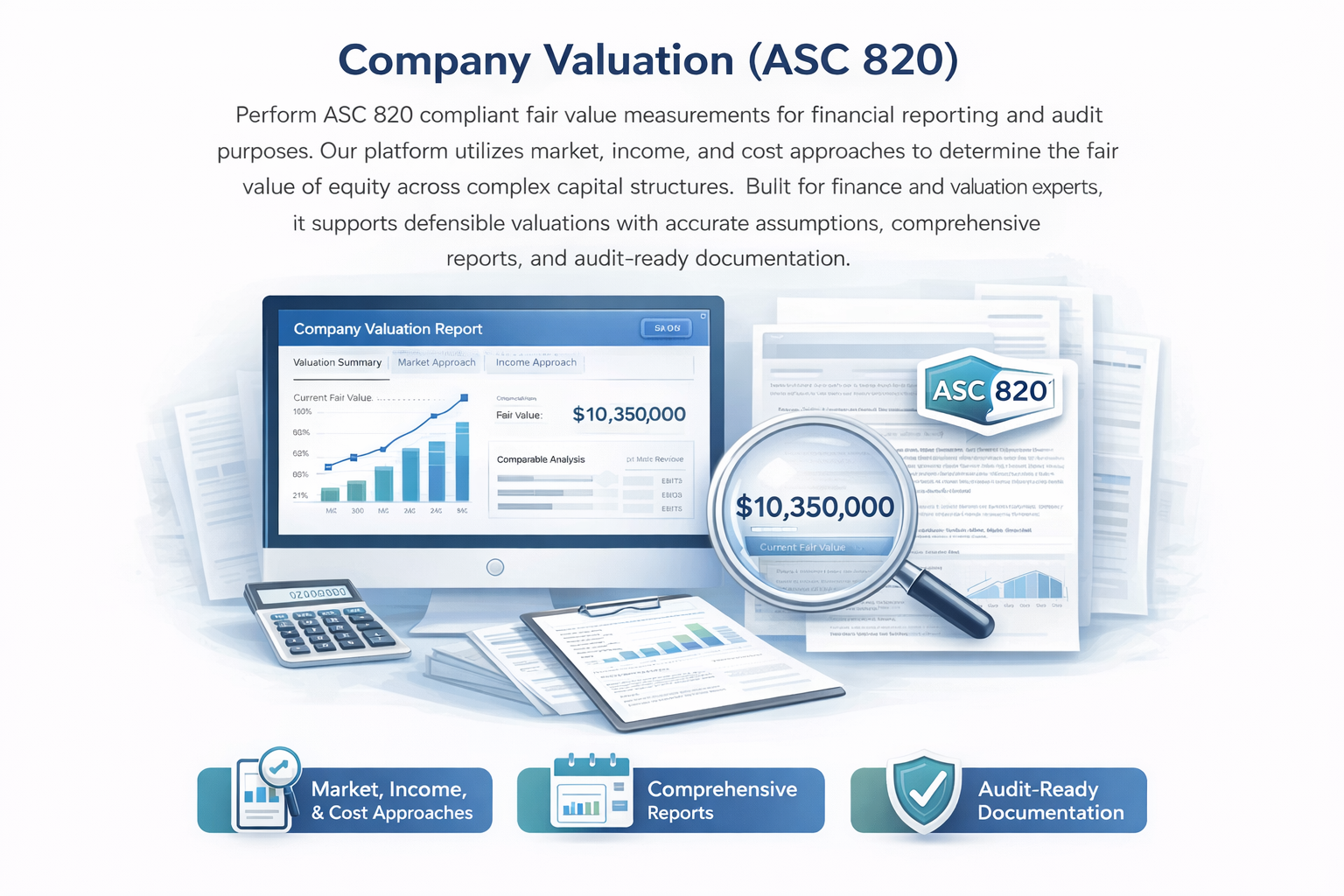 Produce structured valuation reports aligned with 409A, ASC 718, ASC 820, and audit requirements.